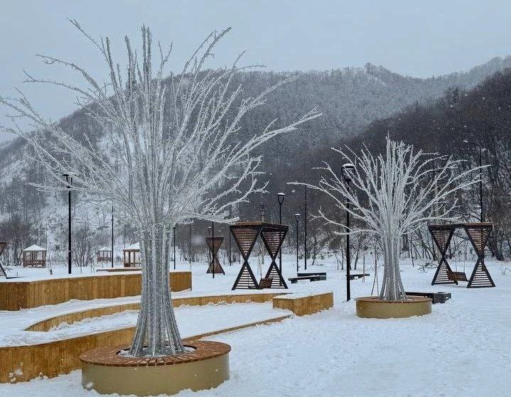 Новый экопарк «Зеленая гавань» в Холмске украсили к Новому году