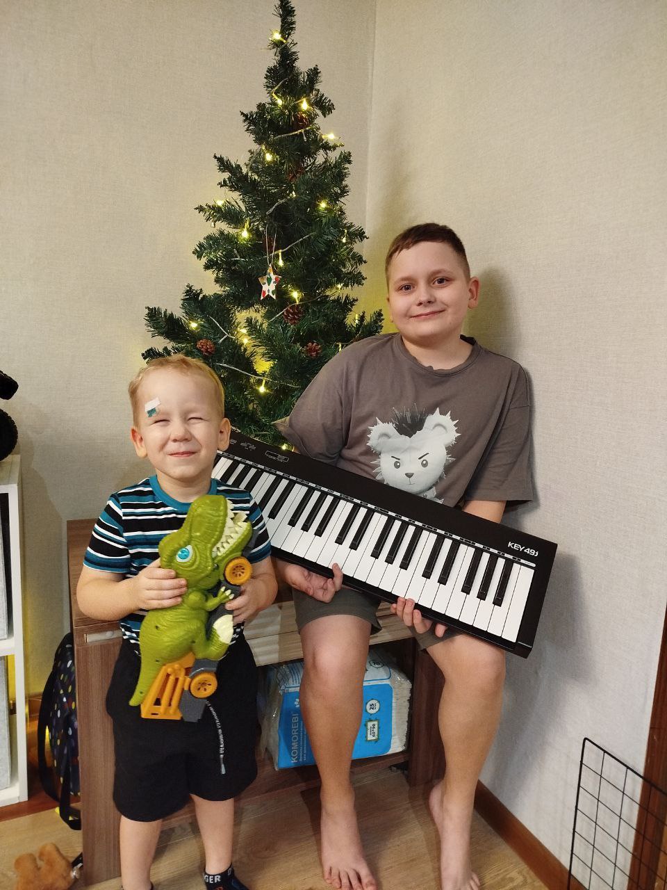 11-летний Семён из Южно-Сахалинска мечтал о музыкальной клавиатуре, а его 3-летний брат Матвей любит динозавров и автомобили. Спасибо нашей традиционной «Ёлке желаний» за возможность подарить ребятам радость и немного новогоднего волшебства.