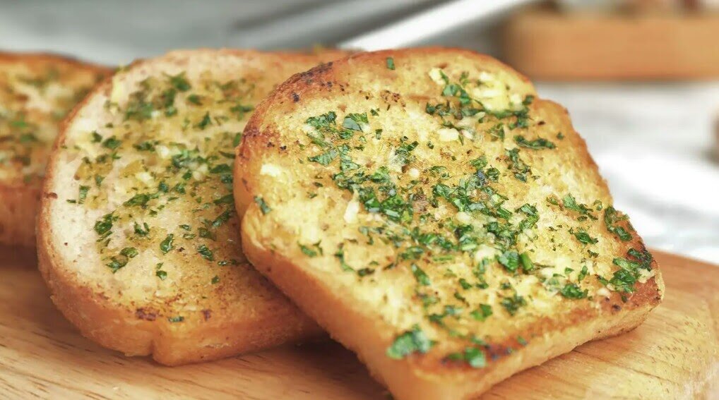 Идеальным дополнением к маслу станут гренки. Для их приготовления необходимо разогреть духовку и нарезать хлеб. На каждый ломтик нужно положить небольшое количество чесночного масла, не распределяя его, и сверху немного натертого сыра. Этот слой защитит масло от перегрева и образует приятную корочку.