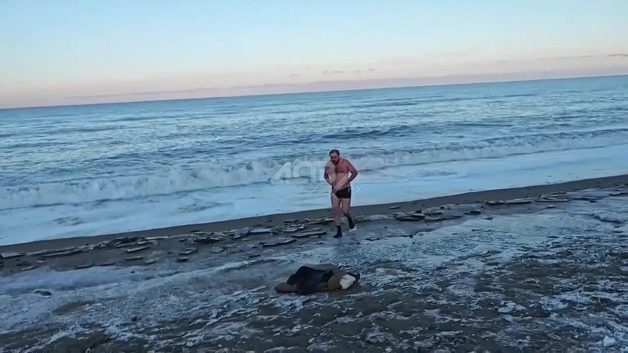 Мужчина устроил заплыв в ледяной воде 3 января. Отметим: накануне онлайн-сервисы погоды показывали, что температура воды составляла -1 градус. Морская вода при этом обычно замерзает при минус 2-3 градуса.