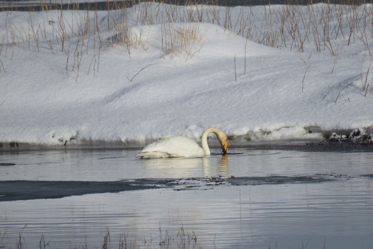 Житель Северо-Курильска сфотографировал одинокого лебедя