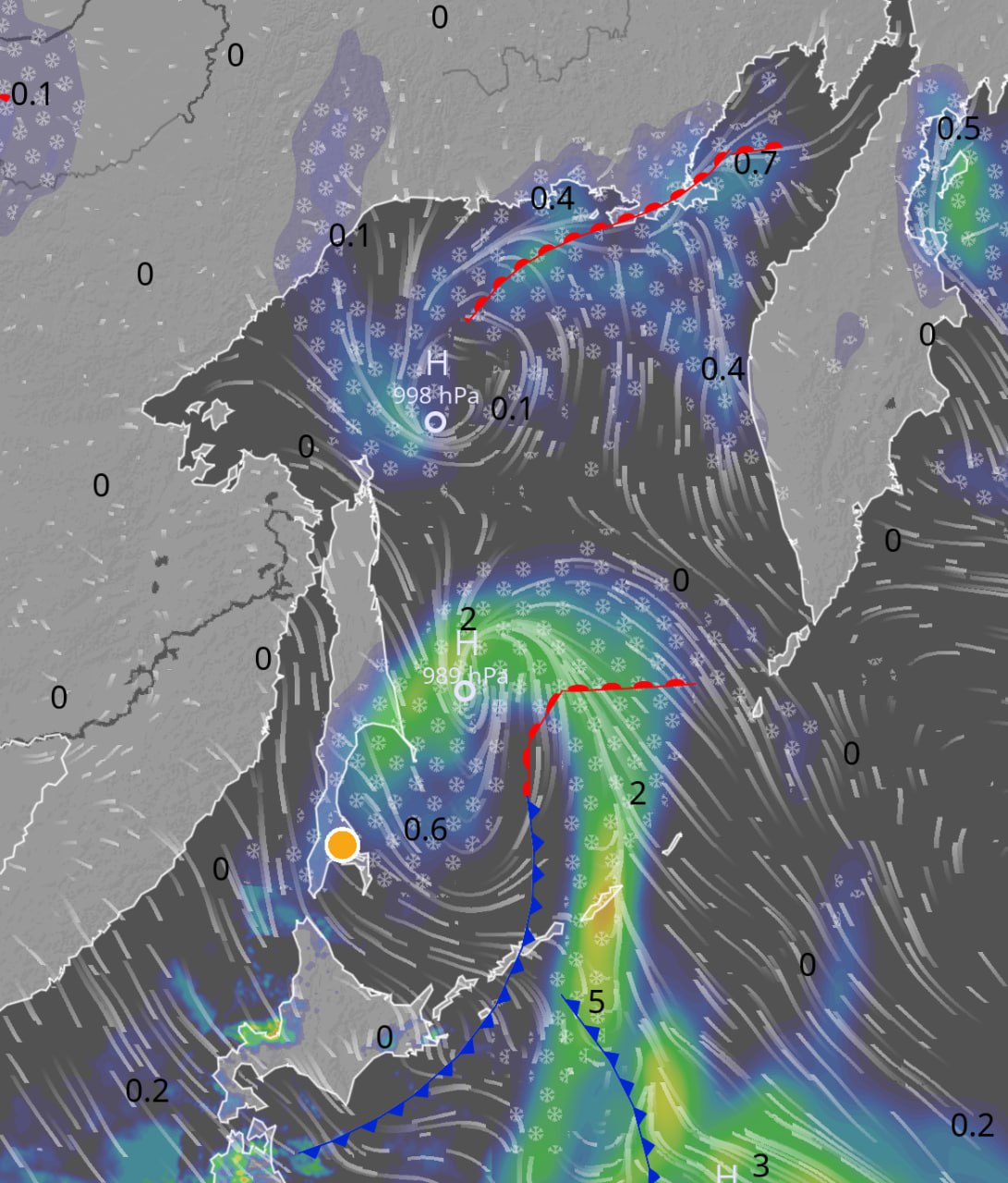 После обеда в четверг непогода ослабела и отправилась из южных районов Сахалина в сторону Поронайска и Курильской гряды.