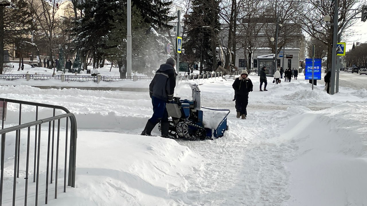 В населённых пунктах области ударно убирают снег. И чистят дороги.