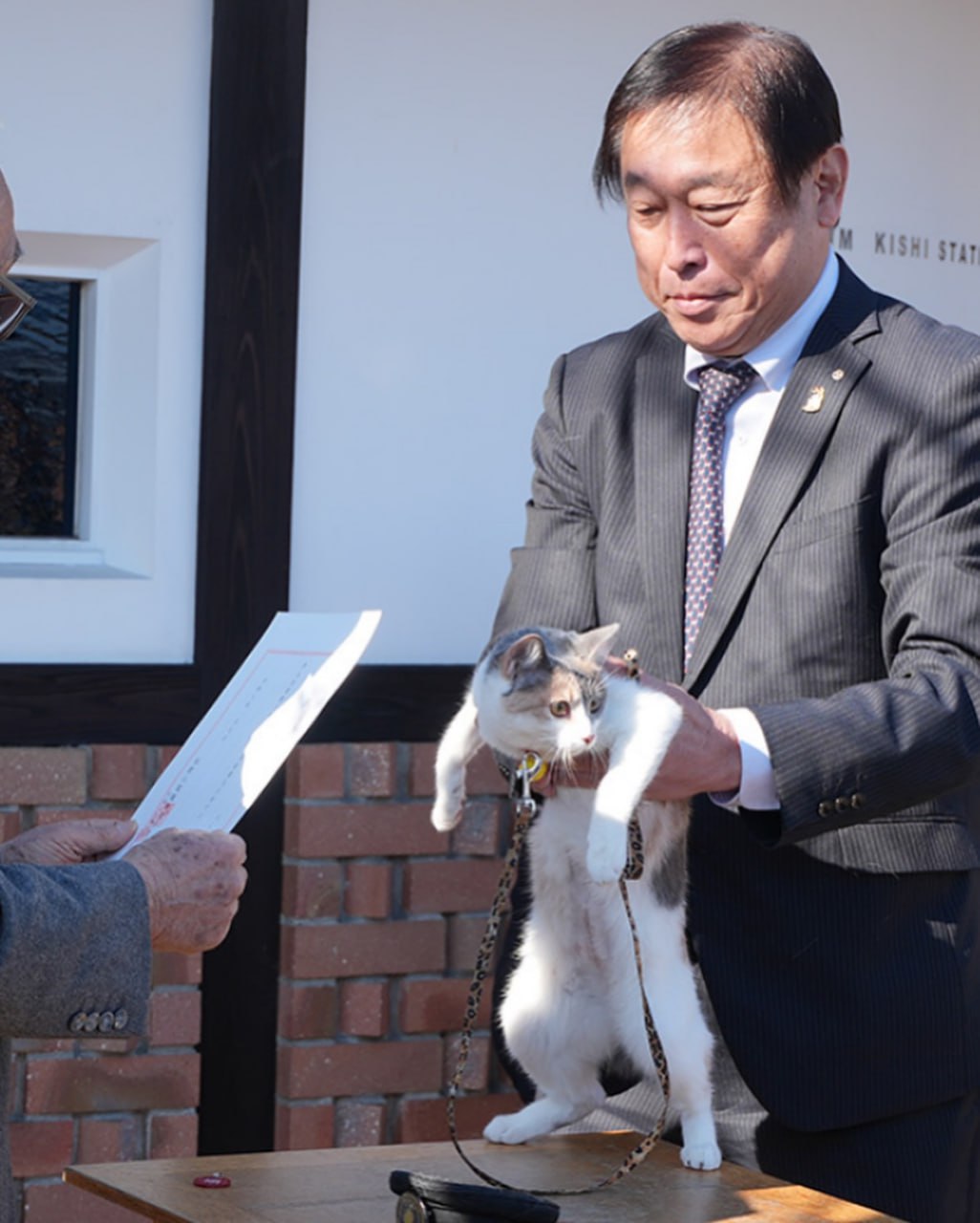 Япония продолжает уникальную традицию назначения кошек на официальные должности в сфере железнодорожного транспорта. На станции Киси (префектура Вакаяма) прошла церемония вступления в должность нового начальника — трёхцветной кошки по имени Йонтама.