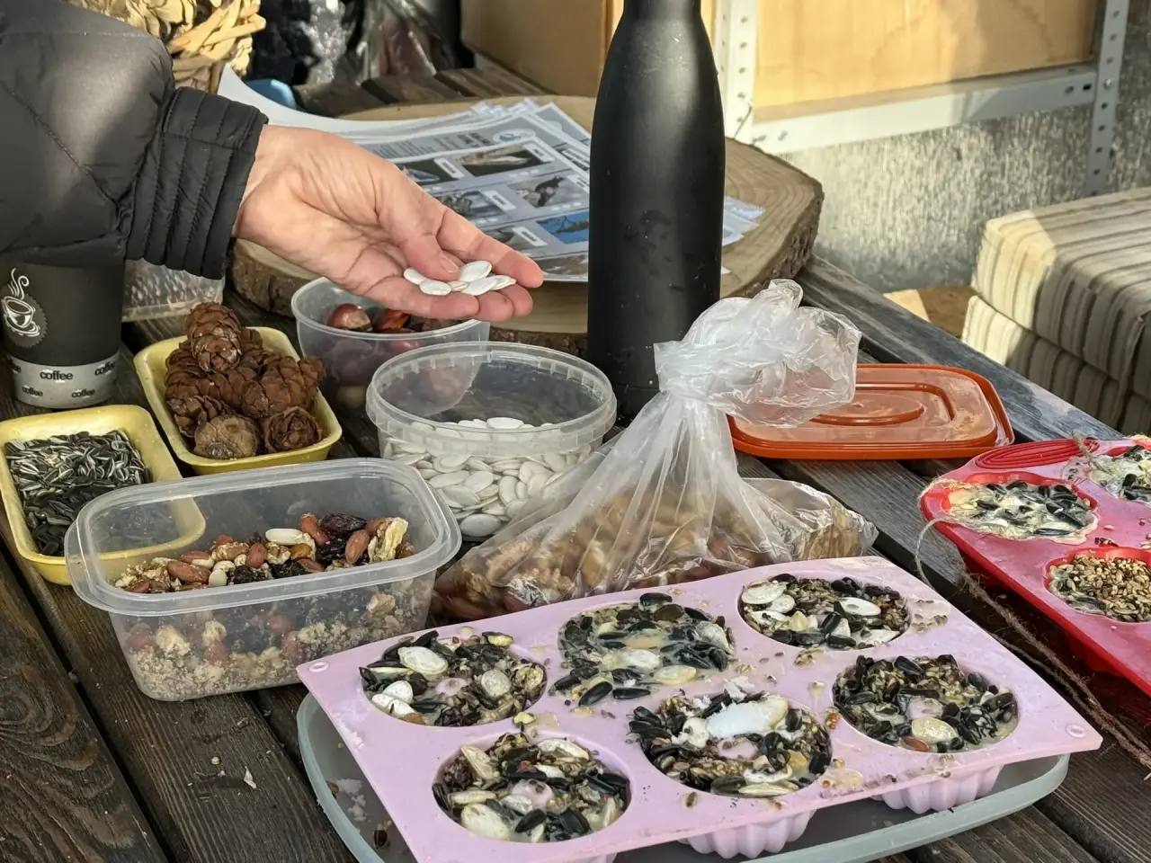 Школьники узнали, что пернатых лучше кормить семенами тыквы и подсолнуха или же делать «птичьи кексы» - заливать в форму натуральный жир, добавлять семечки и измельченные орехи. Ребят научили правильно закреплять такие лакомства на дереве: их нужно плотно привязывать к стволу или ветке, чтобы они не качались. На угощение быстро слетелись птицы - юные орнитологи понаблюдали за ними с помощью бинокля. Ребятам показались сойки, дубоносы, снегири, воробьи. И это - лишь малая часть видов, которые сегодня живут в ботаническом саду. Всего же их - 27.