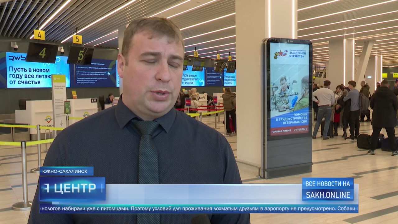 Сотрудники кинологической службы в аэровокзальном комплексе Южно-Сахалинска готовятся заступить на службу