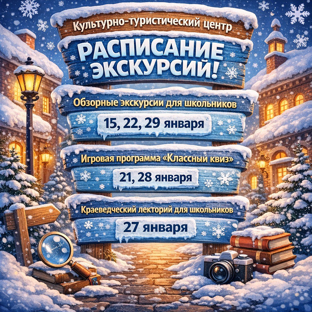 Также Культурно-туристический центр реализует мероприятия для организованных групп школьников по следующему расписанию.