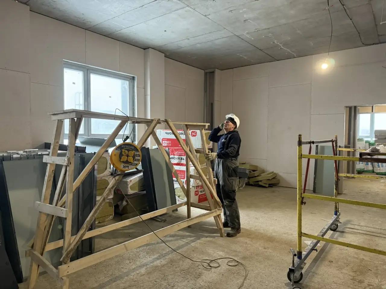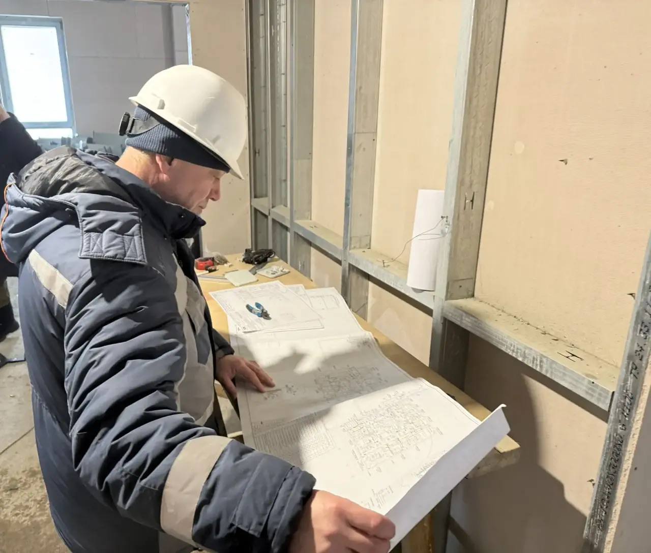 Параллельно работают внутри: проводят электрику. Сейчас ждут команду специалистов, чтобы приступить к возведению перегородок - стен будущих кабинетов. При строительстве медицинских учреждений используют устойчивые к обработке дезинфицирующими средствами гипоаллергенные краски - их покупка и доставка замедляет ход строительства.