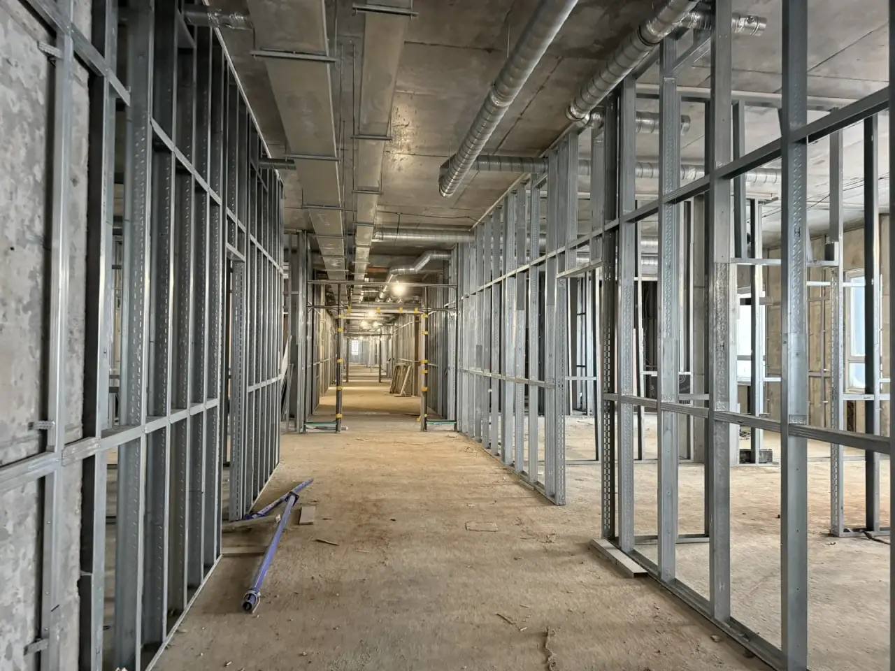 Здесь полностью завершили монолитные работы. Сейчас занимаются облицовкой фасада, утепляют его минеральной ватой и создают подсистему вентиляции.