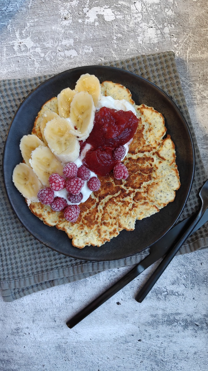Начать утро можно с необычного, например, с кокосовой лепёшки с семенами чиа. Этот лёгкий и полезный завтрак можно дополнить сметаной, клубничным джемом без сахара, бананом и малиной. Такой завтрак точно зарядит энергией на весь день.