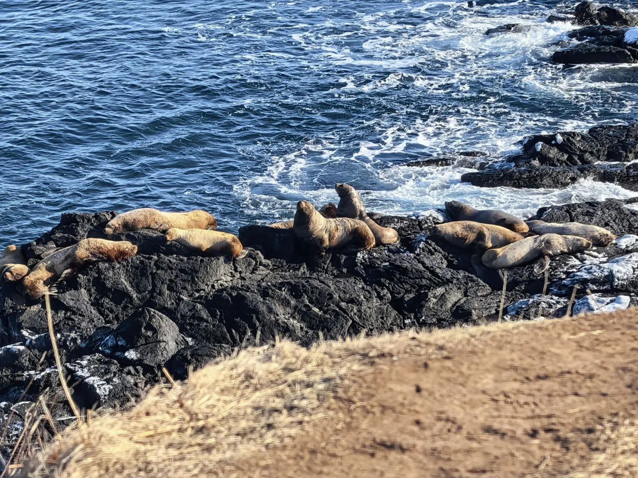 Лежбище сивучей на Южно-Курильском мысе вновь привлекло внимание местных жителей и туристов. Морские львы расположились на берегу, греясь на солнце и практически не реагируя на окружающую обстановку.
