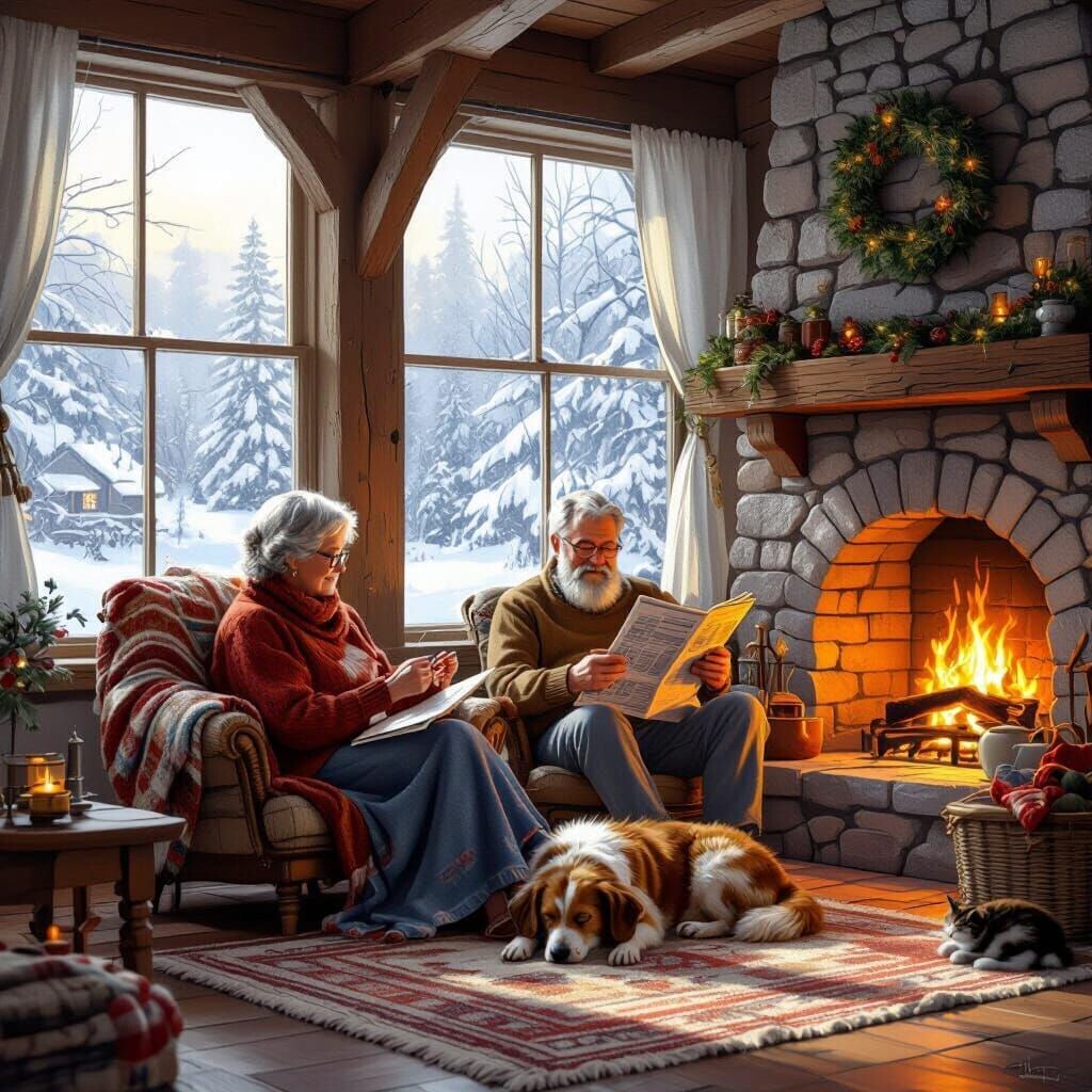 Многим знакома тоска зимних вечеров, когда за окном кружатся снежинки, а внутри царит уют. В произведениях искусства, изображающих пожилых людей, наслаждающихся моментами тишины у камина, можно увидеть отражение нежности и спокойствия. Такие сцены напоминают о прошлом, когда счастье заключалось в простых радостях и совместном чтении, наполненном молчаливым пониманием.