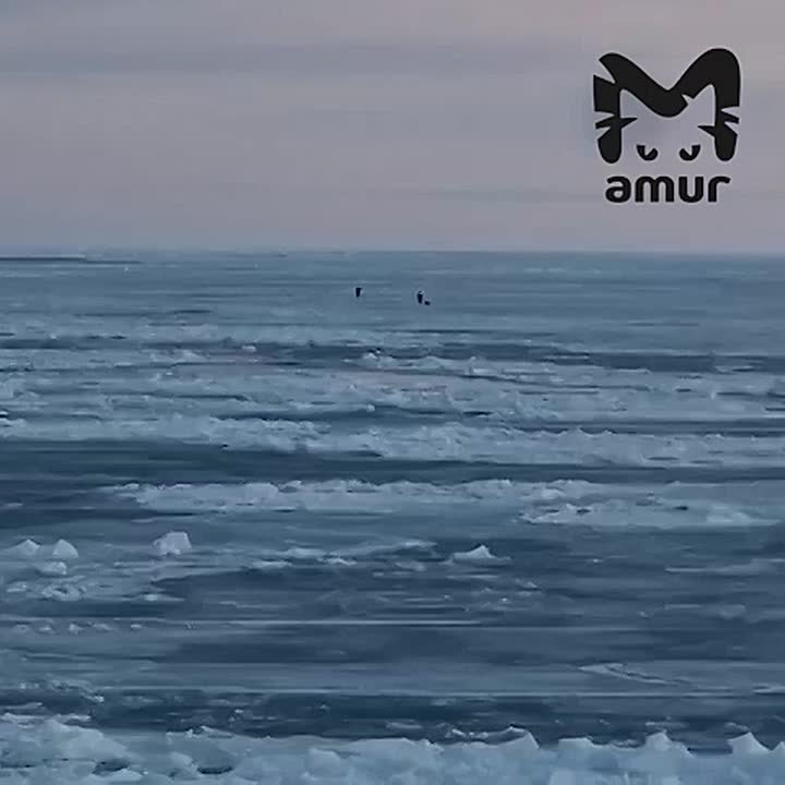 Льдину с рыбаками уносит в Охотское море на Сахалине.