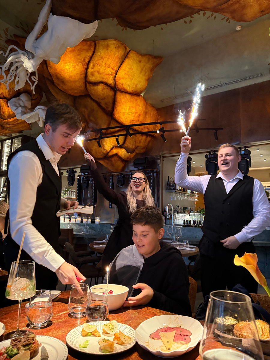После вкусного ужина в Phantom у взрослых была возможность остаться на продолжение вечера — в ресторане начинается танцевальная программа и создается атмосфера клубной вечеринки. Однако для Джуниора и его семьи праздник был запланирован на более раннее время. В дни рождения важно хорошо отдохнуть, чтобы наслаждаться каждым моментом, не забывая о следующих приключениях.