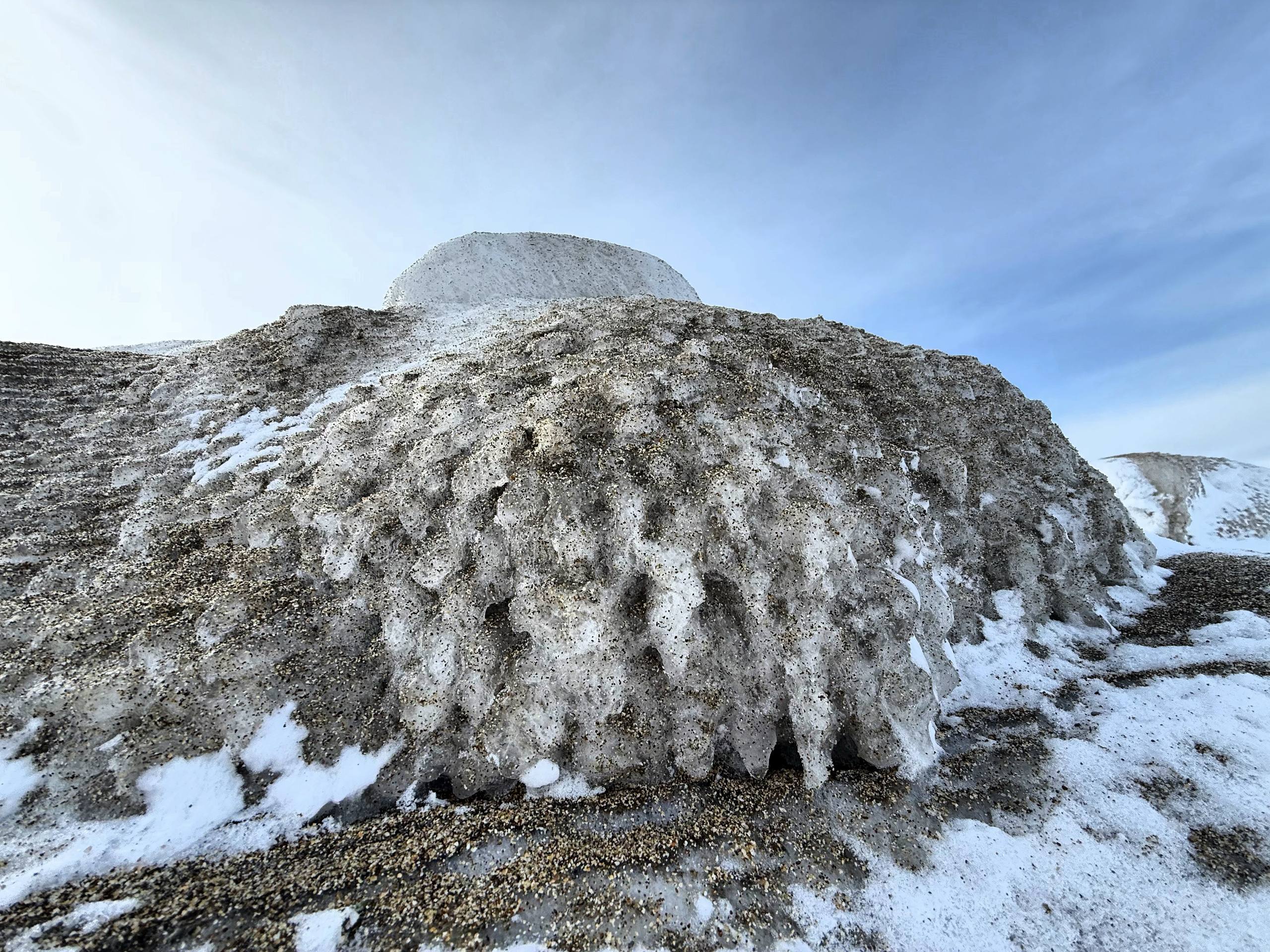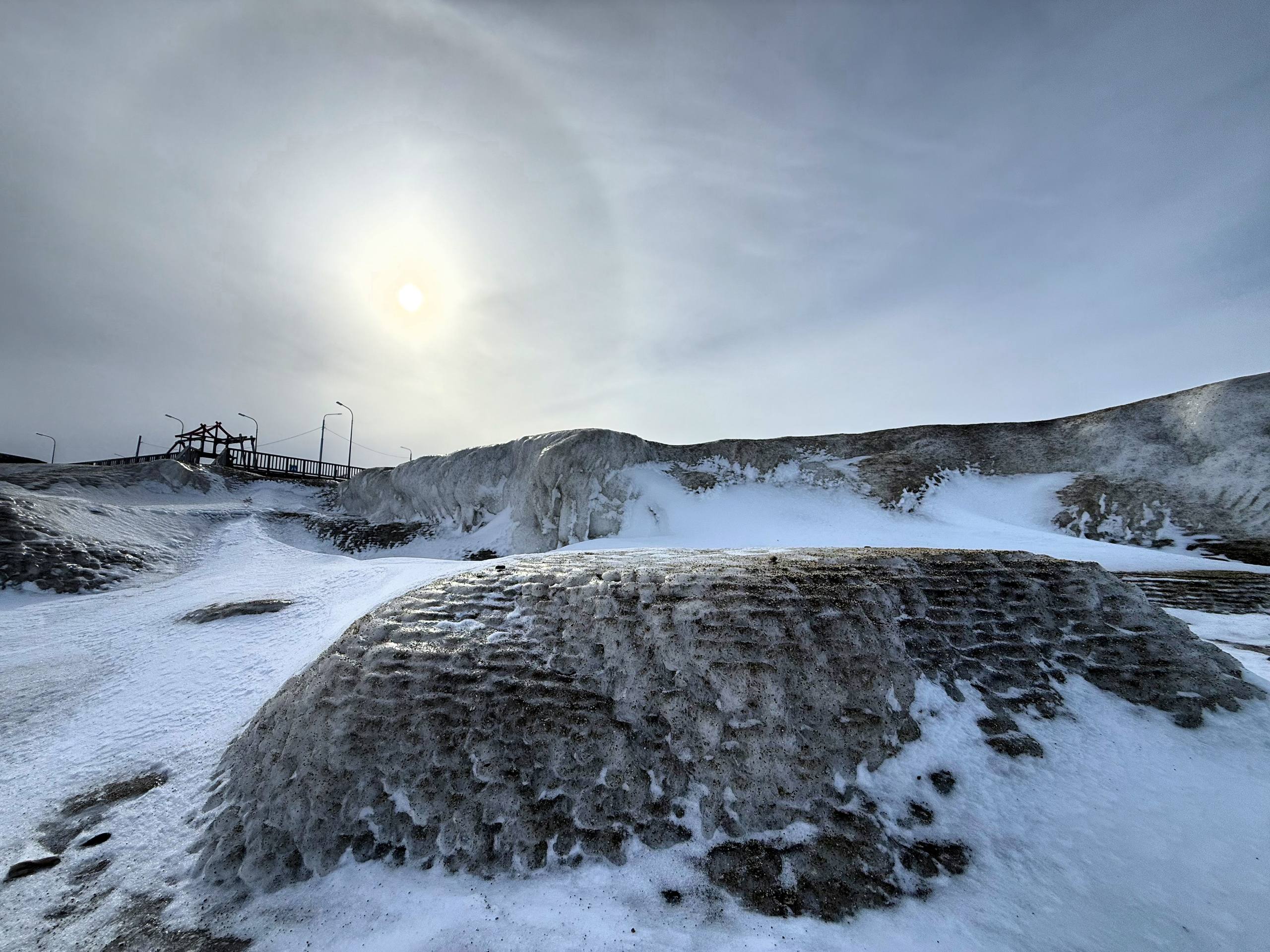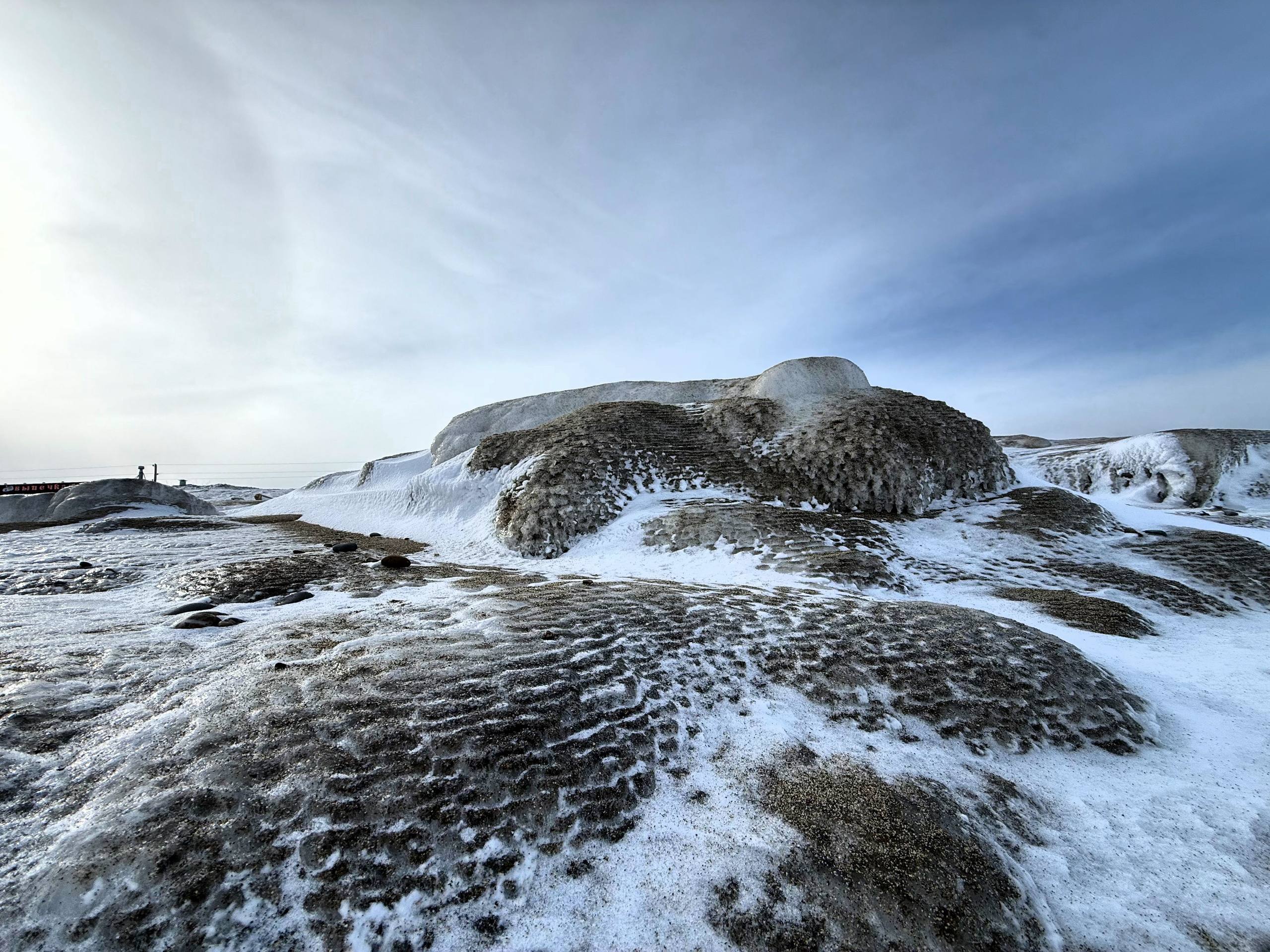Море сковано льдом, а волны застыли в причудливых изгибах берега
