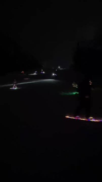 Вечер на «Горном воздухе» стал по-настоящему зрелищным. Более 20 лыжников и сноубордистов украсили себя и своё снаряжение светодиодами и устроили эффектные спуски, превратив склон в сверкающую ленту огней.