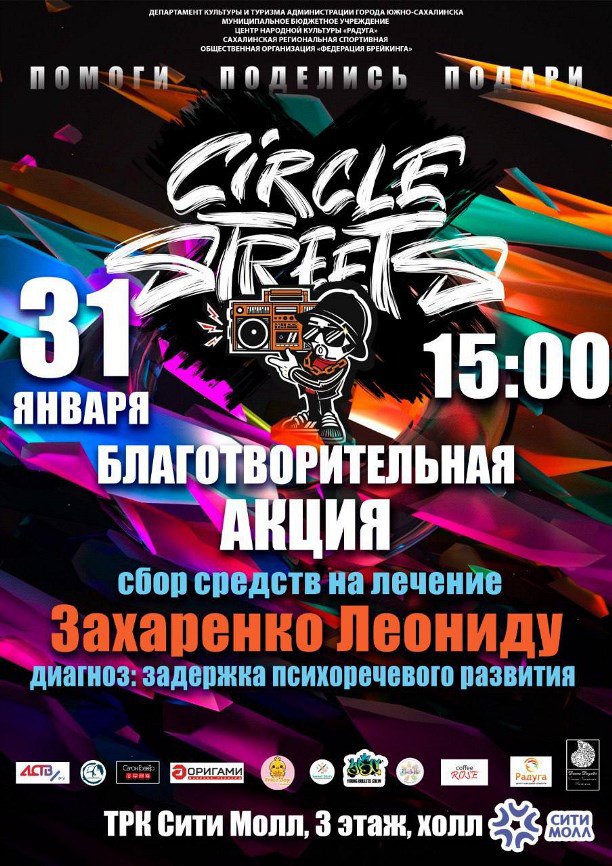 Сахалинская федерация брейкинга и Центр народной культуры "Радуга" приглашают жителей и гостей областного центра на благотворительную акцию Circle Street ("Круг улиц").
