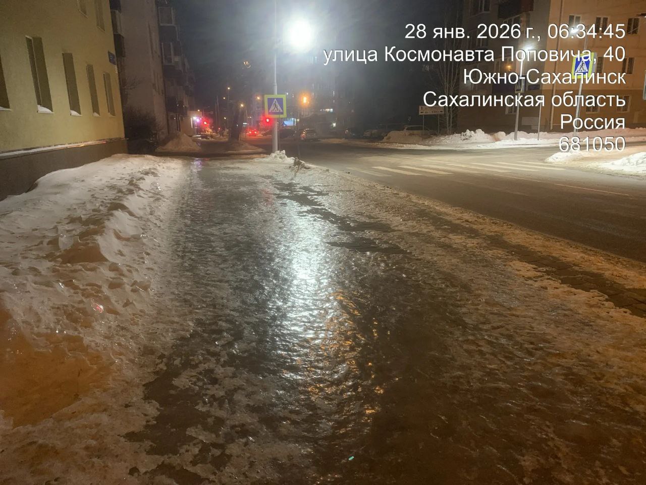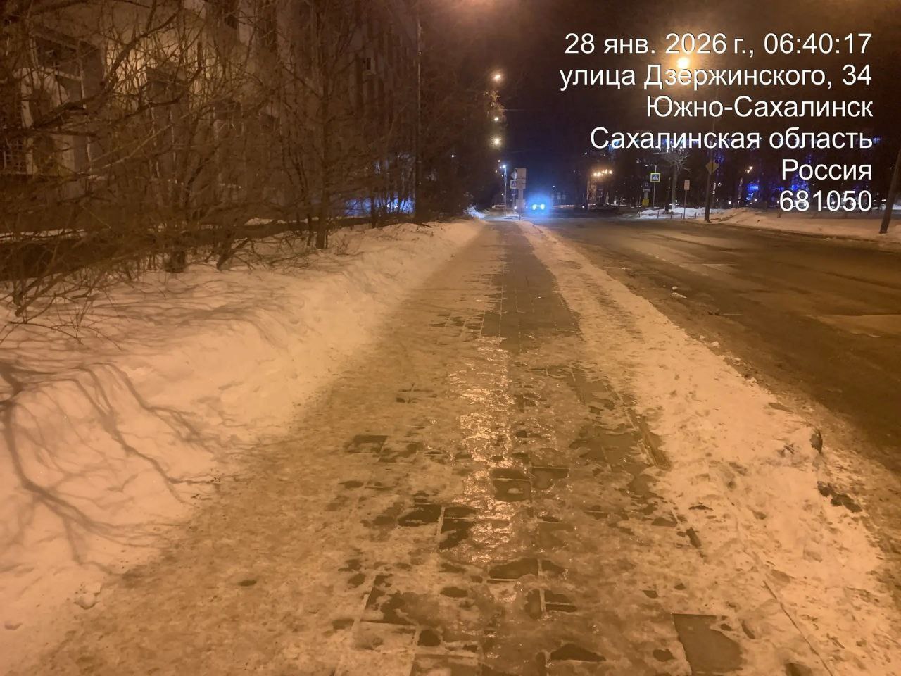Подрядчиков предупредили об ответственности за наледь за южно-сахалинских тротуарах