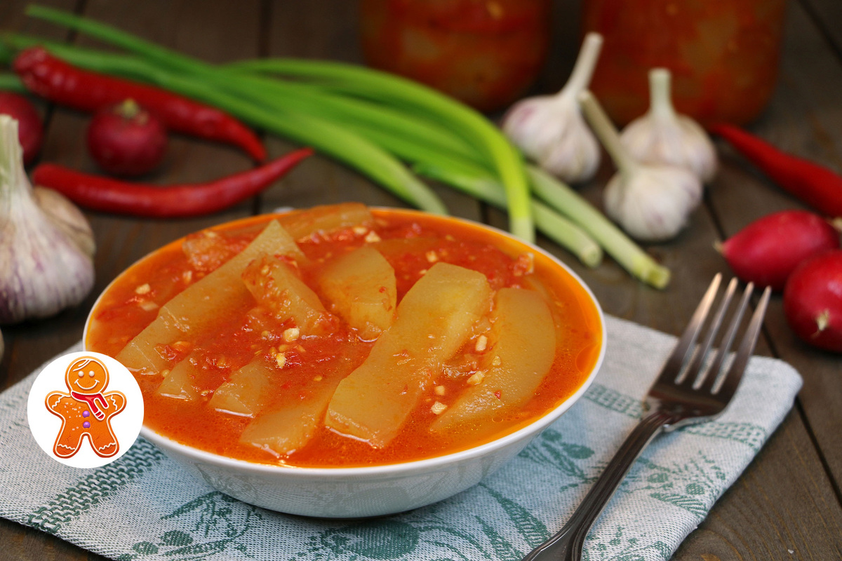 Подготовка требует минимального времени: нарезка овощей, укладка по банкам, заливка маринадом и стерилизация. В итоге появляется практичный запас, который можно открыть в холодный вечер и вспомнить тепло лета без лишних хлопот.