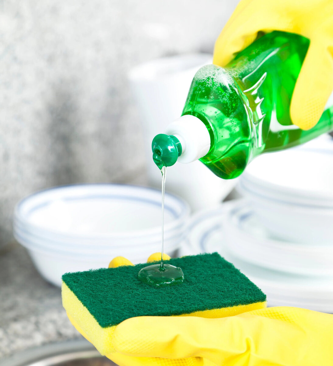 Для кухонной мебели, дверей и даже стен достаточно слабого раствора и обычной губки. Важно не переусердствовать с мылом, чтобы не оставить липкую пленку.