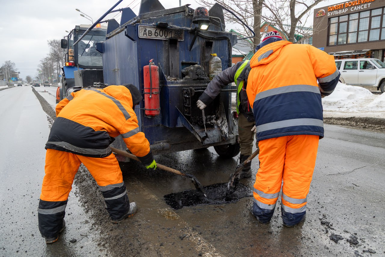 За две недели силами дорожников было устранено порядка 450 квадратных метров провалов на центральных улицах. В планах на ближайшие два дня также ул. 1-я Октябрьская.
