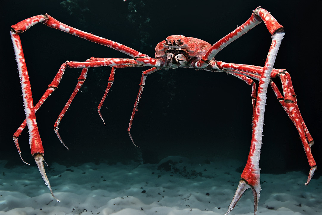 Этот краб, возможно, является самым крупным членистоногим на планете. В то время как ему не хватает одного килограмма, чтобы обогнать североатлантического осьминога, его размеры не перестают впечатлять: размах передних конечностей достигает почти четырех метров. Следует заметить, что у самок ноги с клешнями значительно короче, что позволяет предположить, что на изображениях чаще всего можно увидеть именно их.
