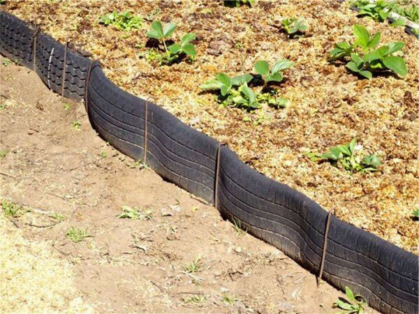 - Огород с бордюром: Приподнятые грядки становятся удобнее и функциональнее. Разрезка и огибание покрышек для создания бордюра потребует усилий, но результат может того стоить.