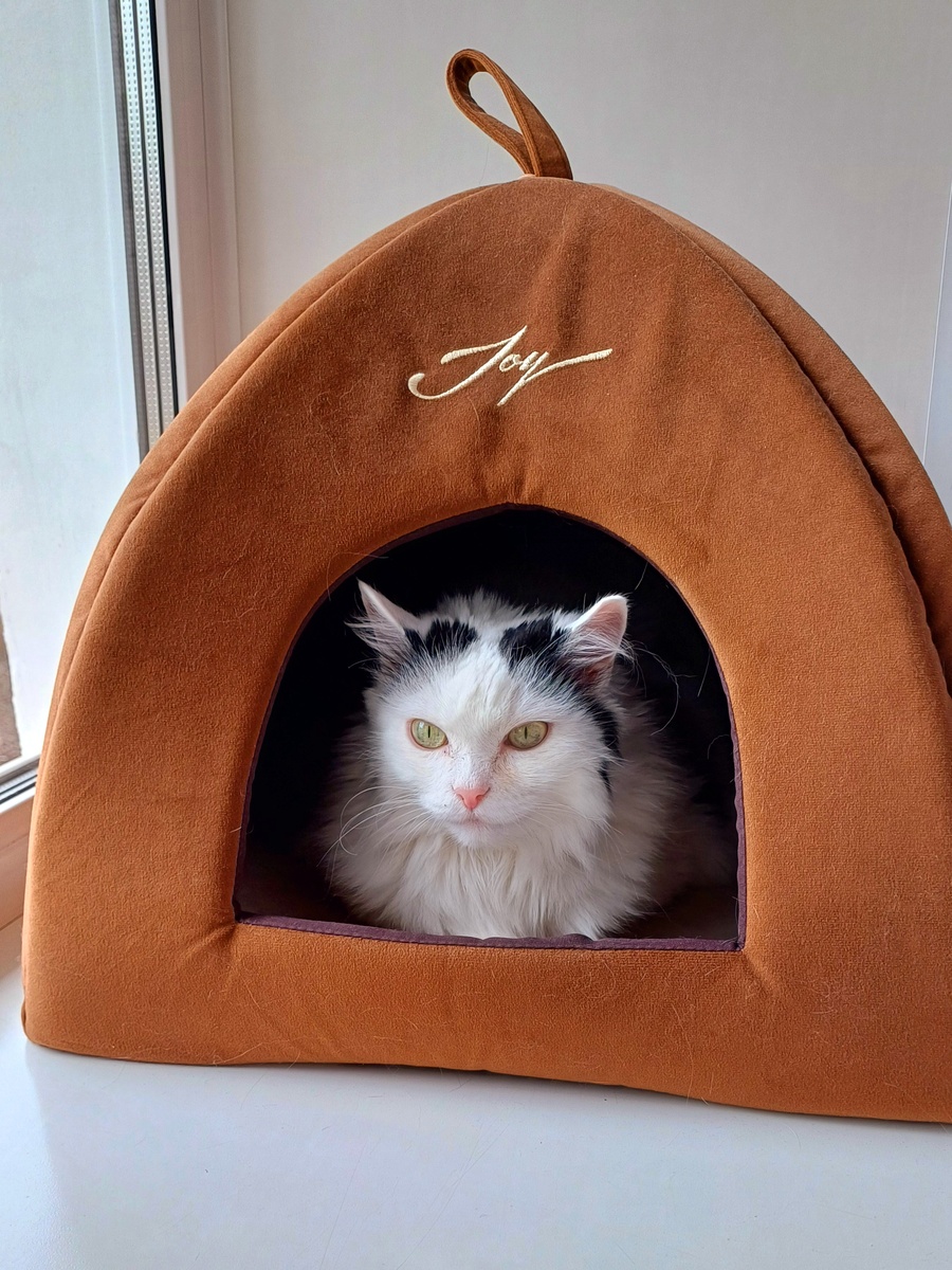 Теперь, устроившись на подоконнике в своём домике, она наблюдает за происходящим в квартире. Удобно устроившись, Снежа словно наслаждается моментом — расслабившись в своём уголке, она не собирается покидать его. Интересно, что её новое любимое место теперь покрыто её шерстью, а значит, это «волосатое царство» стало настоящим отражением её личности.