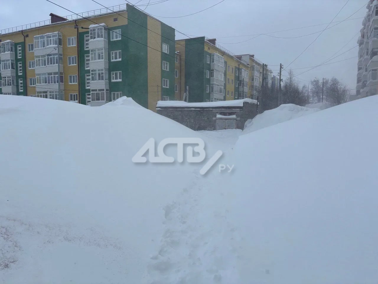 В Охинском районе продолжается мощная метель. По словам местных жителей, в течение дня 5 февраля дует сильный ветер, буквально сбивая с ног, а на улицах продолжают расти "стены" из снега.