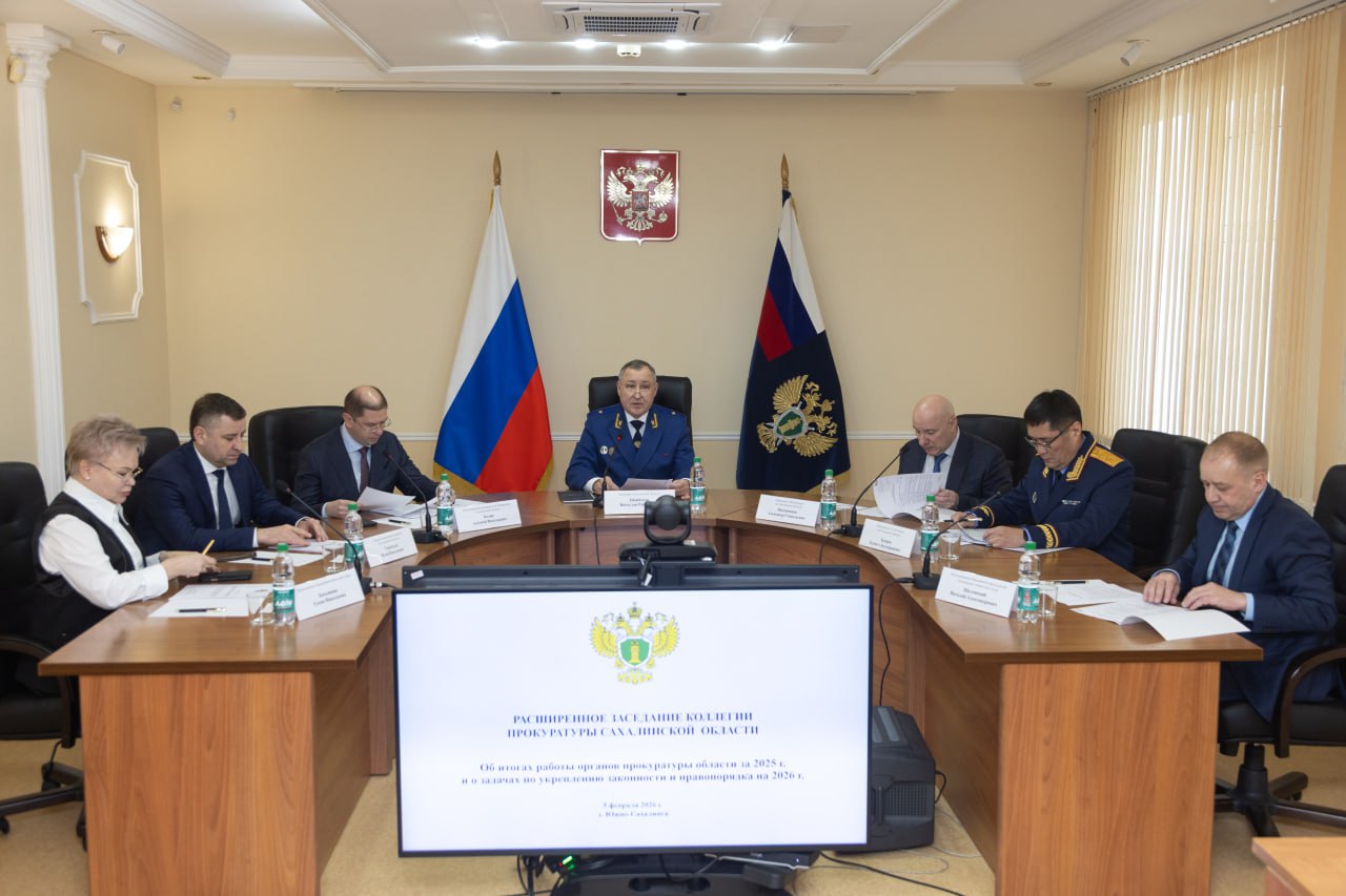 Подвели итоги работы прокуратуры Сахалинской области за 2025 год и обсудили новые задачи. Расширенное заседание коллегии прошло под председательством регионального прокурора Вячеслава Рафиковича Шайбекова.