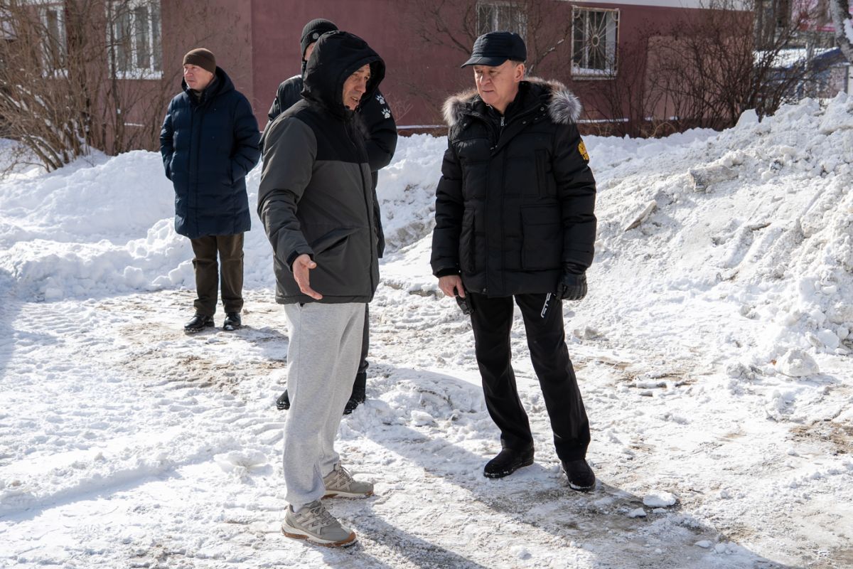 Мэр Южно-Сахалинска приехал с проверкой во двор дома, жильцы которого пожаловались на УК