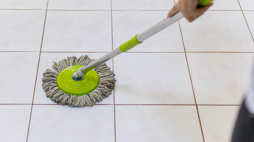 Смешайте все компоненты до однородности. Смачивайте швабру в полученном растворе и очищайте плитку до полного удаления загрязнений.