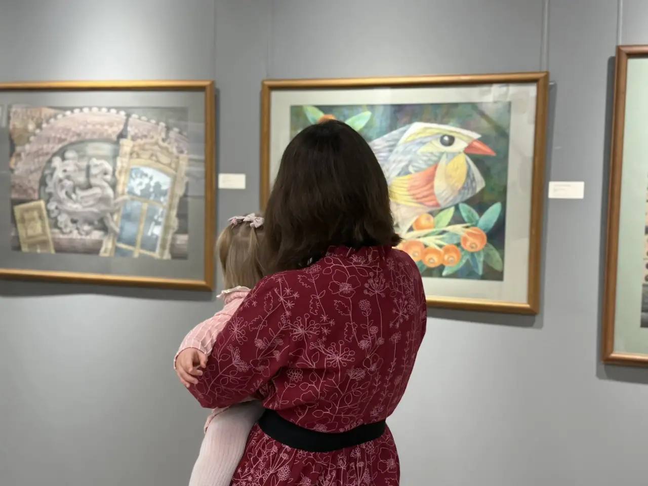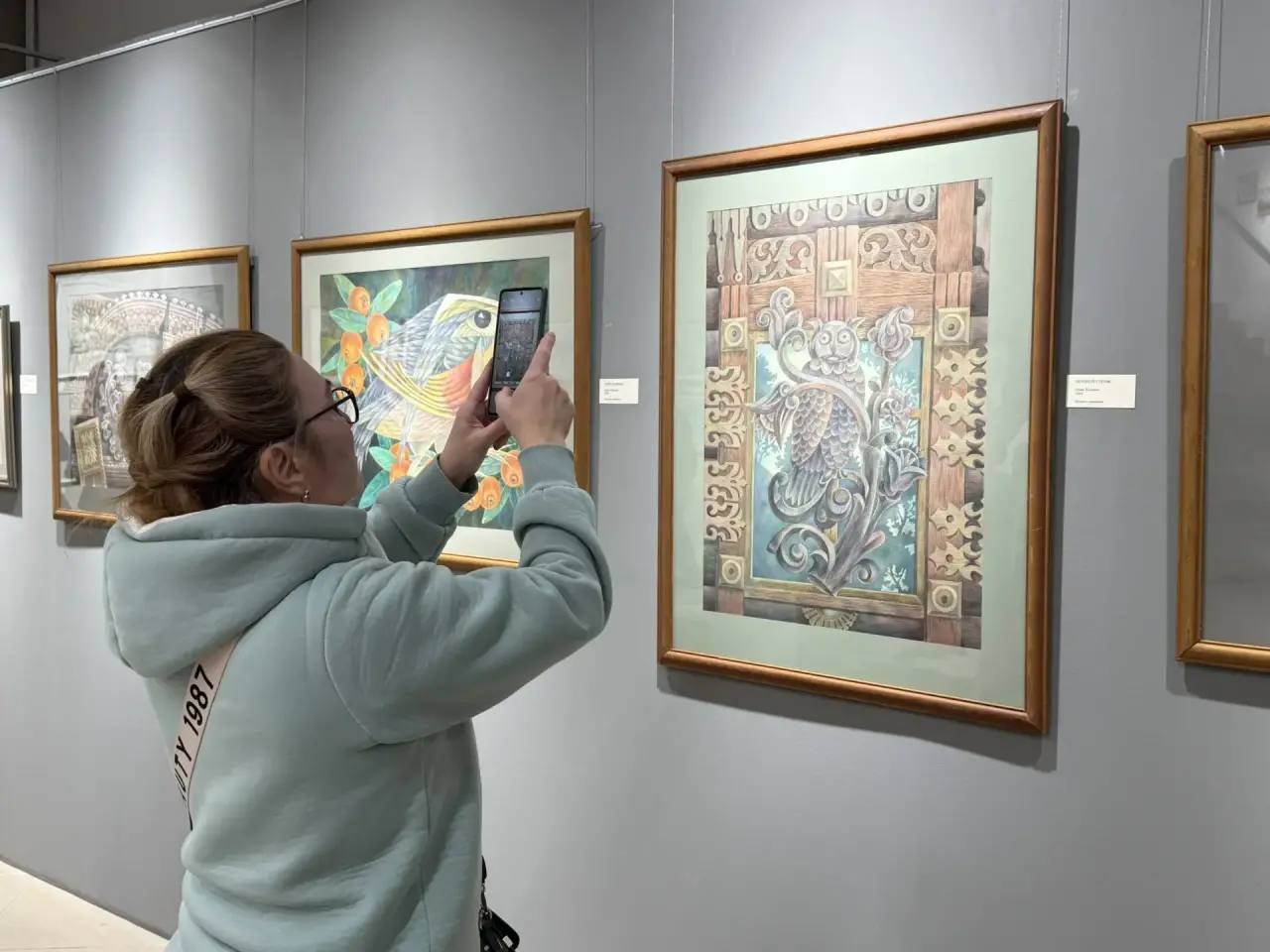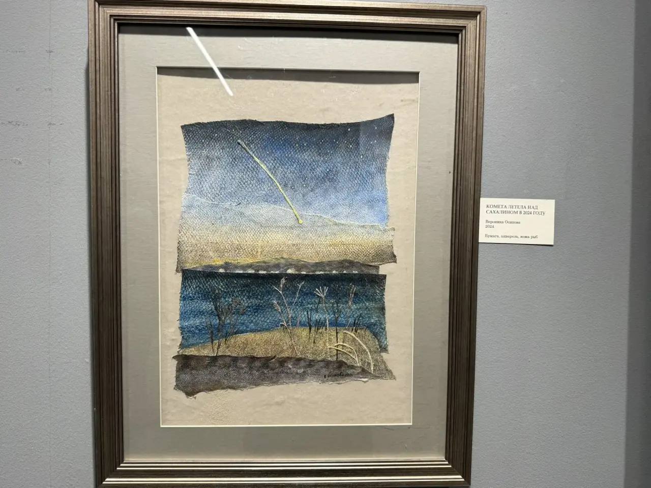 Картину, написаную акварелью прямо по настоящей рыбьей коже, показали на выставке «Акварельные миры» в Южно-Сахалинске.