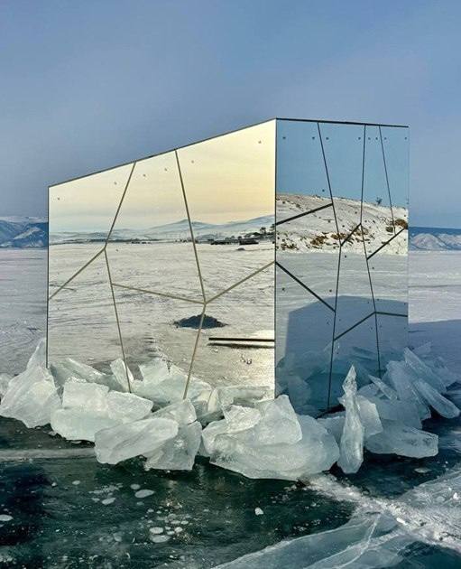 Зеркальную капсулу спрятали на льду Байкала. Необычный арт-объект построила на побережье Ольхона художница Анастасия Байкалова в Иркутской области. Инсталляция сливается с окружающей средой.