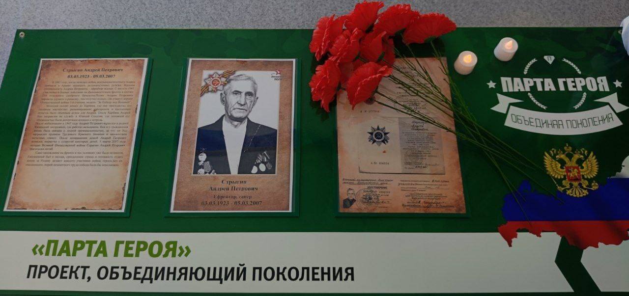 В школе поселка Харпичан Солнечного округа Хабаровского края появилась Парта Героя. Ее открыли в честь ветерана Великой Отечественной войны Стрыгина Андрея Петровича.