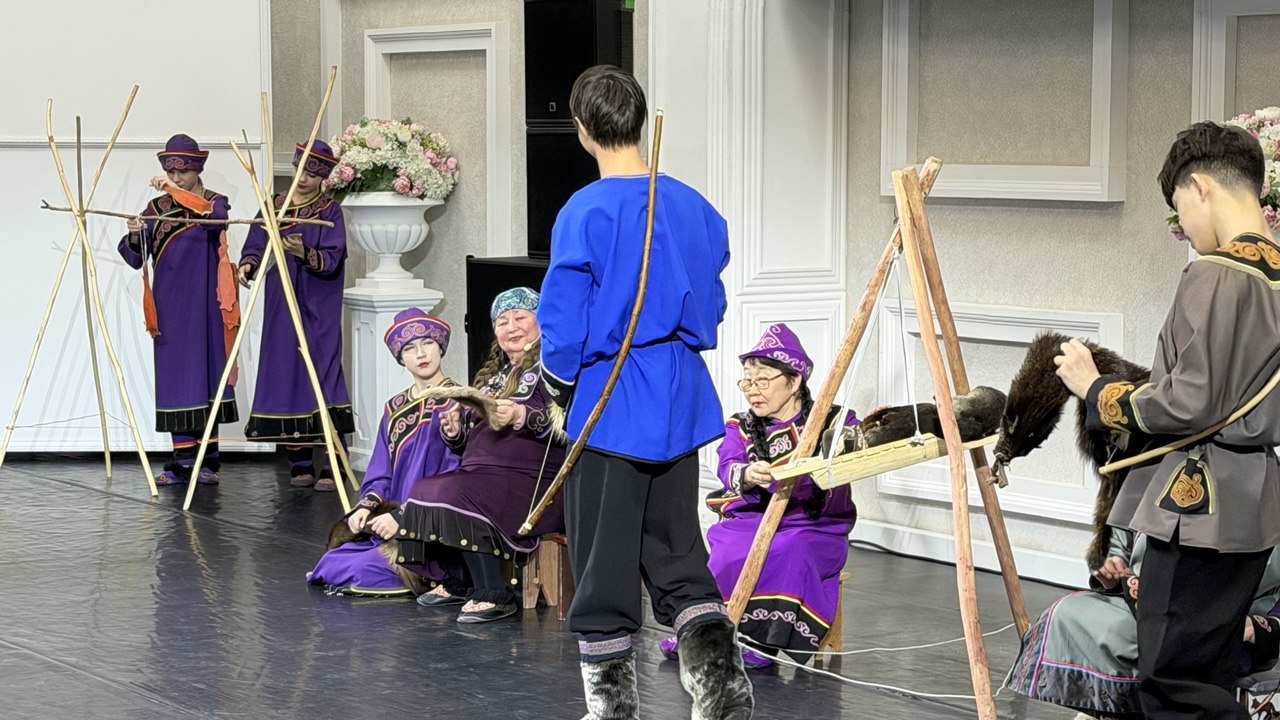 Брачную церемонию нивхов на сцене разыграли участники творческого коллектива из Поронайска и южно-сахалинского центра «Люди Ых миф». Гостям же праздника предложили традиционные угощения национальной кухни.