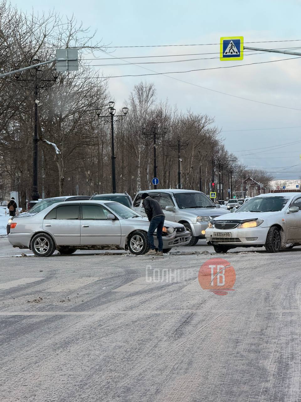 в Южно - Сахалинске. Два седана столкнулись на перекрёстке проспекта Победы и улицы Чехова Движение на этом участке затруднено
