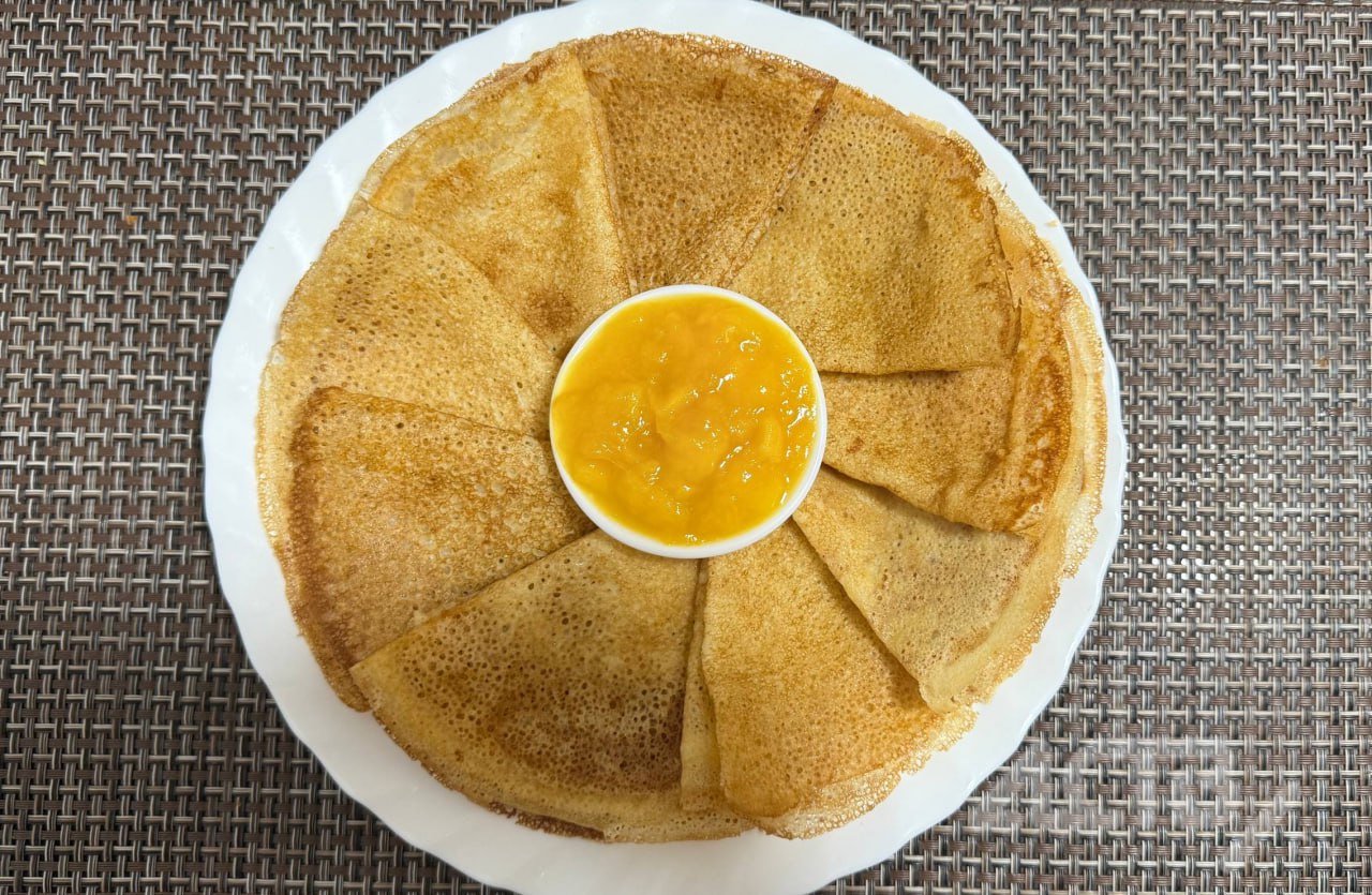 Получившиеся блинчики отлично будут сочетаться с классическими добавками вроде сметаны, масла или сгущёнки. Но если вы хотите чего-то необычного, то предлагаем рецепт простого и вкусного мангового соуса.