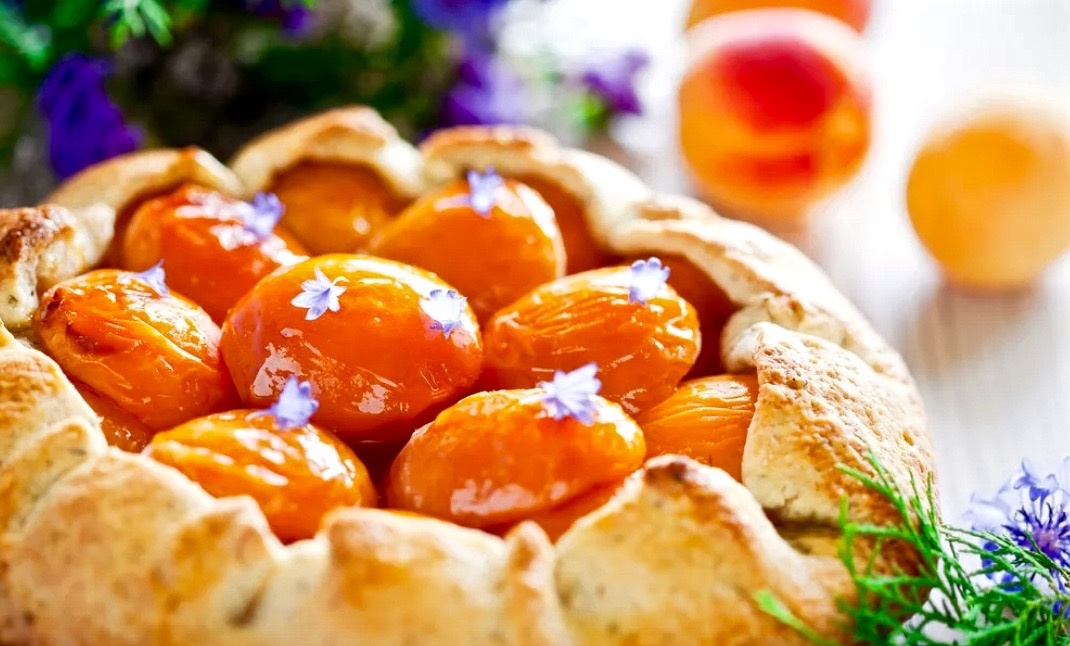 - Тарт с абрикосами и панировочными сухарями: Французская классика с идеальным сочетанием сладкого и кислого.
