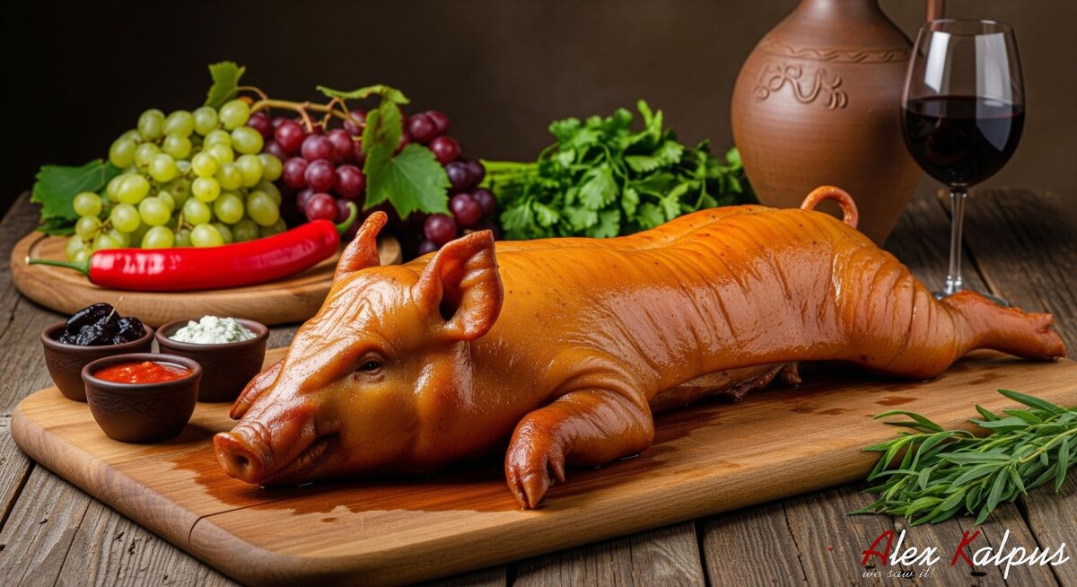 В грузинской традиции еда — это нечто большее, чем просто вкусное блюдо; это священный акт объединения людей. Целый жареный поросенок на ритуальных пирах символизирует изобилие и жертвенность. Особенно часто его можно встретить в восточных регионах Грузии, таких как Кахети и Картли, где такой блюда предпочитают чаще, чем, например, западе, где отдают предпочтение птице.