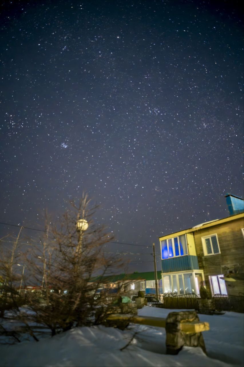 Остров, чьи берега укутаны принесенными льдами, в тишине созерцает космическую жизнь огней,