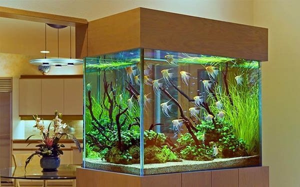 - Аквариум создает красивое эстетическое разнообразие и увлажняет воздух.