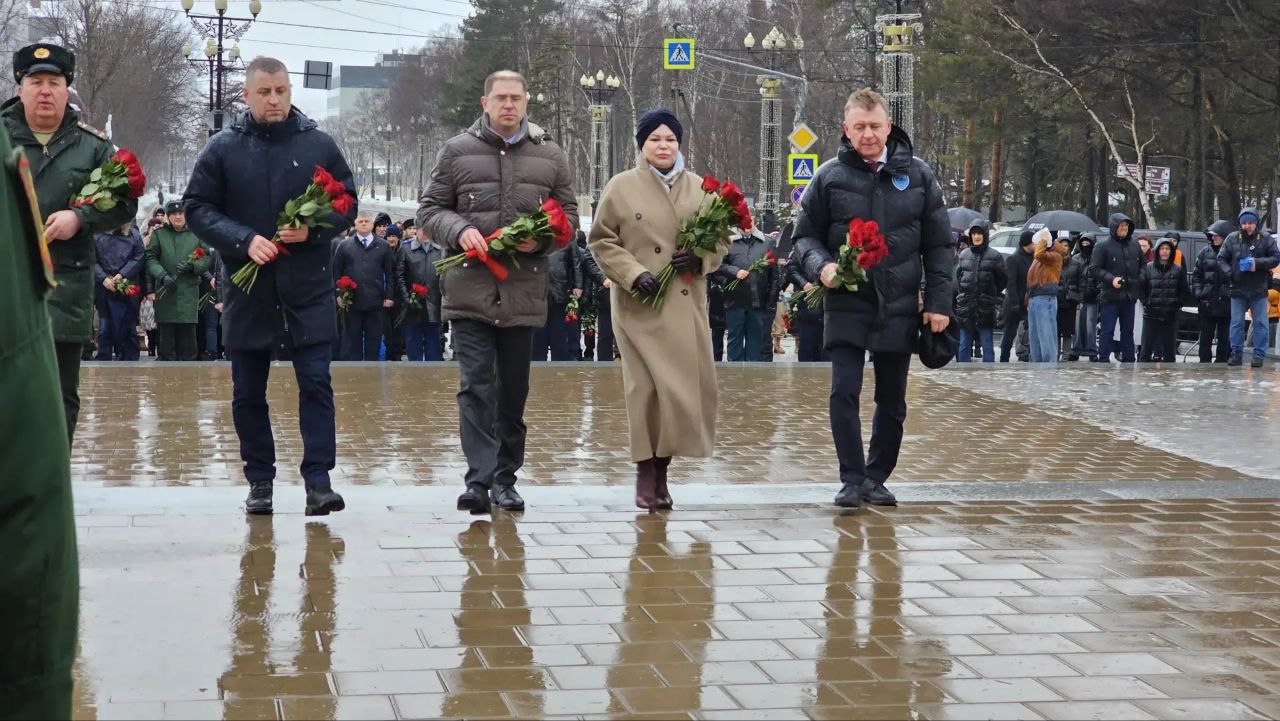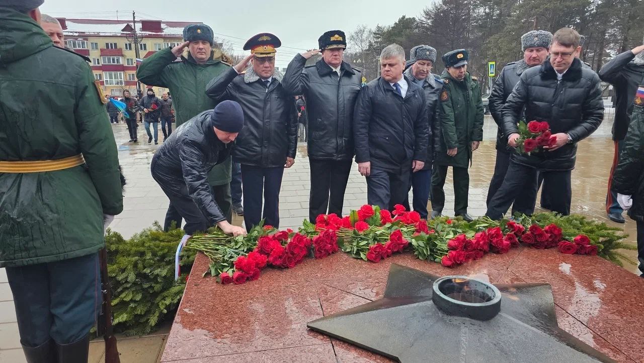 В День защитника Отечества состоялась церемония возложения цветов к мемориалам. На Площади Славы в Южно-Сахалинске в церемонии приняли участие председатель областной Думы Елена Касьянова, депутаты Алексей Плотников, Александр Болотников, Александр Понажев.