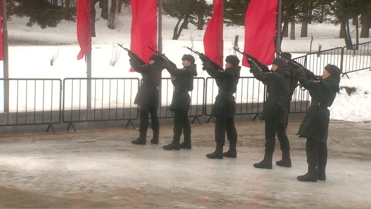 На площади Славы к Вечному огню возложили алые гвоздики. В церемонии участвовали юнармейцы, воспитанники военно-спортивного клуба «Десантник», военнослужащие, сотрудники правоохранительных органов, представители духовенства, общественники и чиновники.