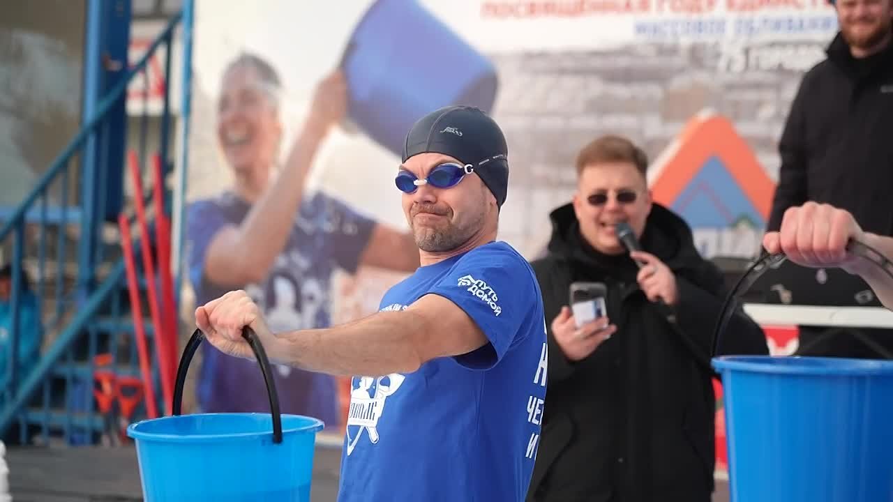 Местом проведения акции впервые стала средняя станция СТК «Горный воздух» – сюда пришли более 100 участников всех возрастов. Перед обливанием сахалинцы надели футболки в цветах флага России, выполнили энергичную разминку и по команде одновременно облились ледяной водой.