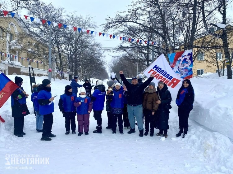 Центральную улицу Охи украсили к 23 Февраля. Какая организация постаралась?