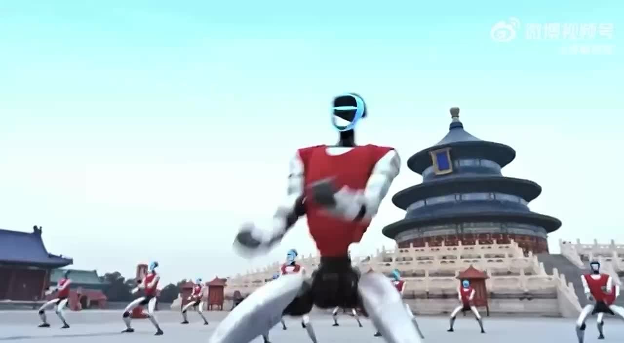 Группа человекоподобных роботов продемонстрировала элементы боевых искусств на площади перед Храмом неба в Пекине.
