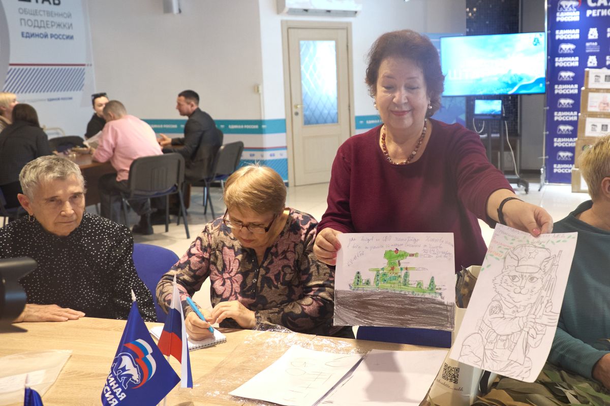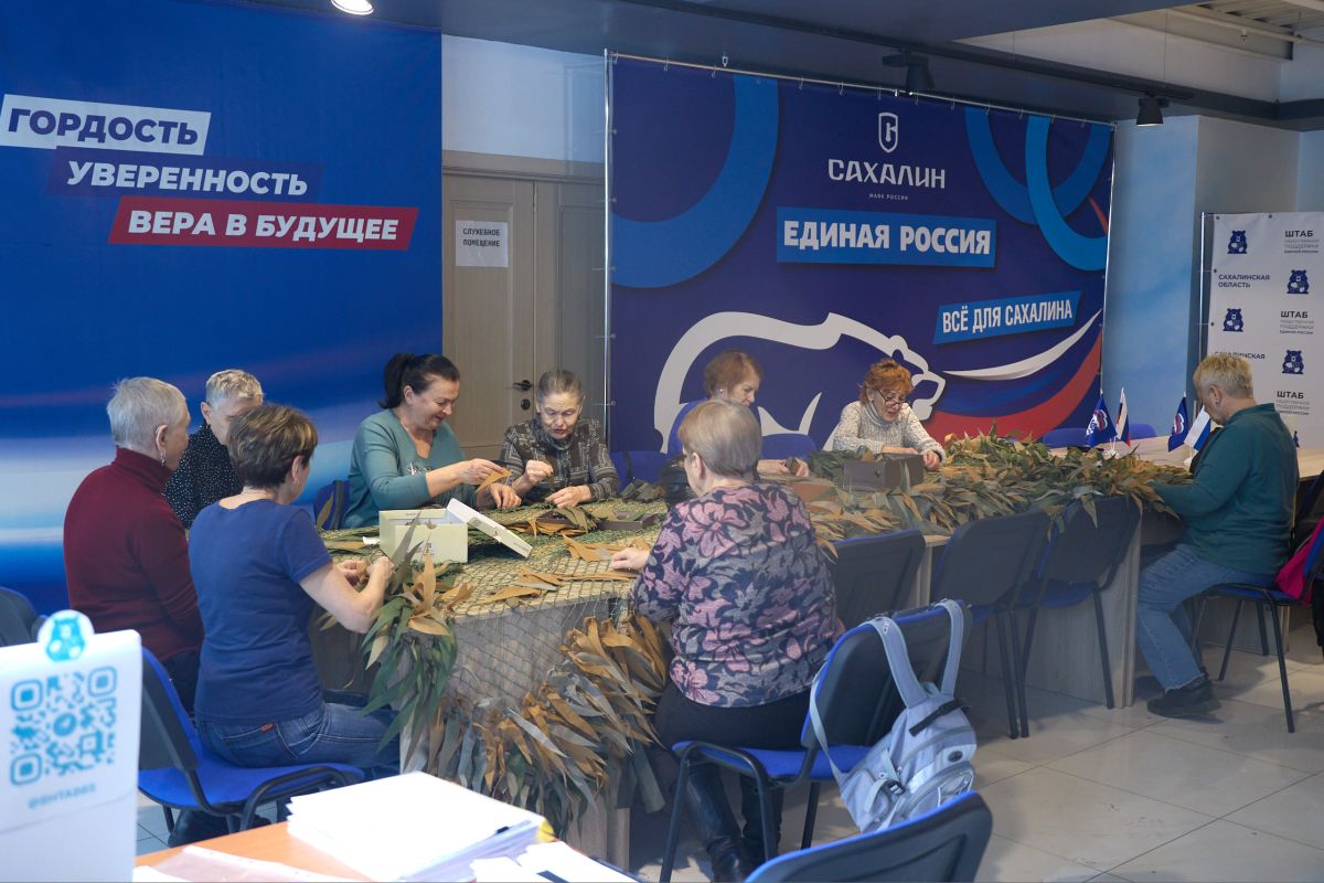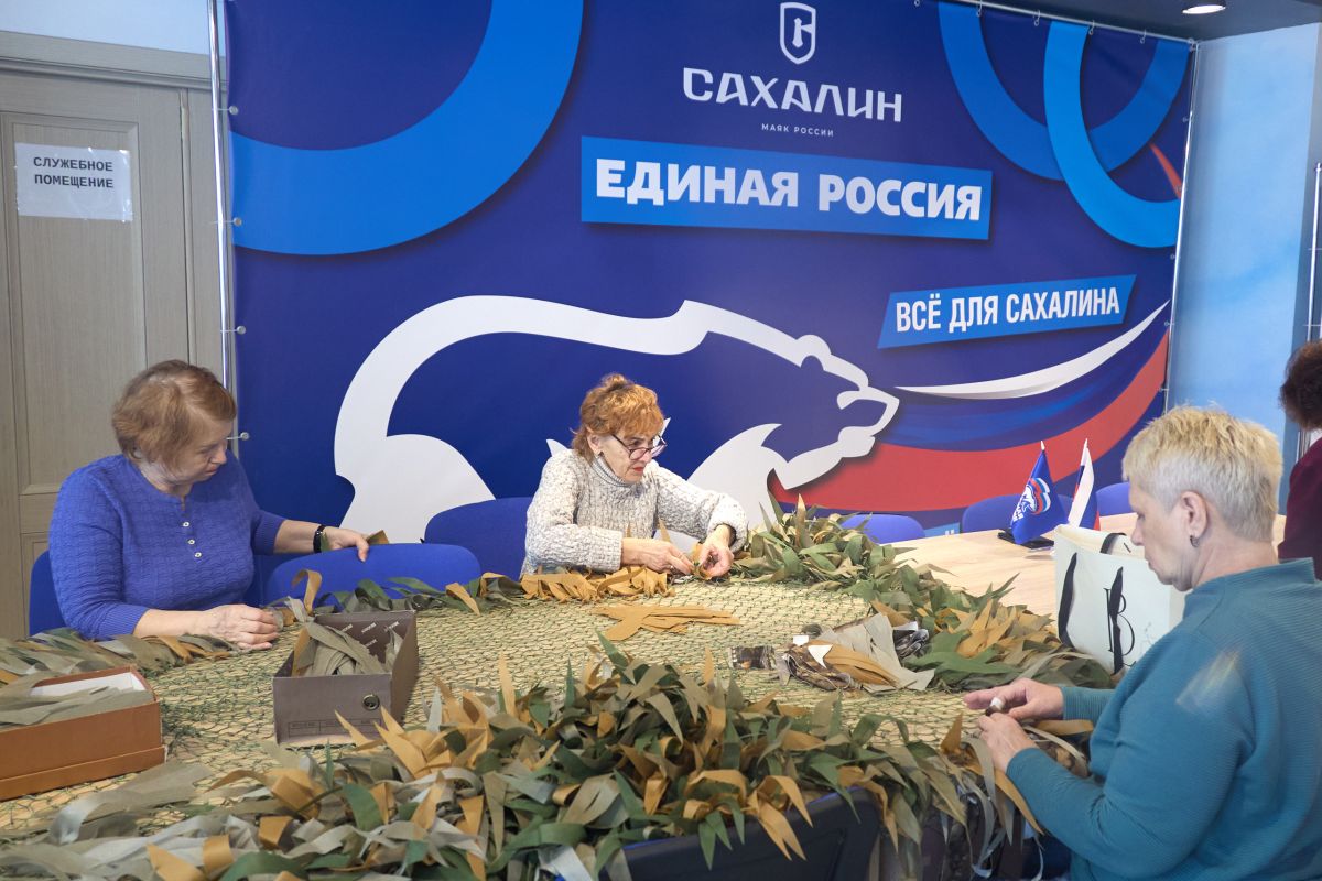В штабе общественной поддержки партии Единой России дважды в неделю кипит работа – «серебряные» волонтёры в рамках проекта «Сопричастность» продолжают активно помогать нашим героям. С начала года южносахалинки сплели уже 8 больших маскировочных сетей, которые отправили на передовую.