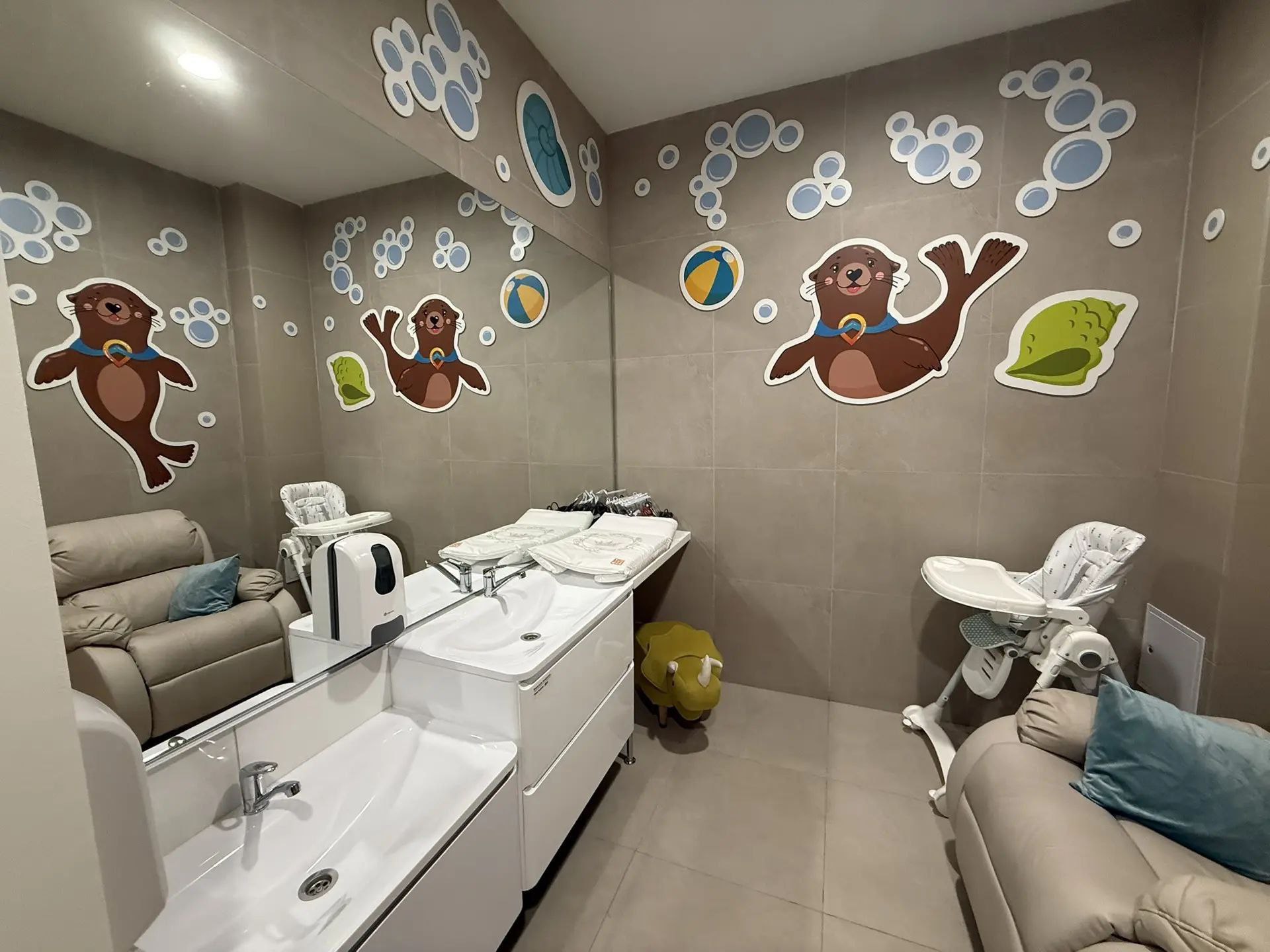 Между 5 и 6 выходом на посадку оборудовали пеленальную комнату. Раньше родители с детьми могли воспользоваться лишь семейным туалетом в основной зоне аэропорт. Новое пространство оборудовали всем необходимым: это и мягкая мебель, и кресло-качалка для кормящих матерей, и стульчик для ребенка, и пеленальный стол, и две раковины. Также в зоне отдыха есть кулер и подогреватель для бутылочек. Кроме того, в комнате постоянно пополняют запасы одноразовых пеленок, влажных салфеток и слюнявчиков.