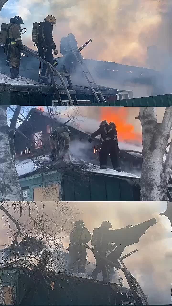 Деревянный дом на 4 семьи горел в Южно-Сахалинске